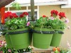 There 2 27 rings, the one on the left has pots set in the outer rings. The one on the right has hanging baskets from the edge of the six rings.