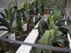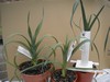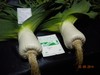 Leeks growing slowly in the greenhouse under supplementary lighting. Pot Leek-Cumbria 9flags, Yorkshire Giant 7flags, Long-Pendal 6flags with 200mm high pipes to start drawing them for length.