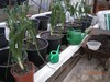Giant Cucumber plants are growing away with the sunnier weather, having to tie them up to support canes most days. Planted in large shallow square pots filled with JI3 to try and keep them healthy.