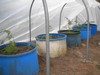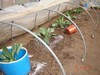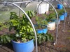 Second tunnel plants are smaller but look healthy and are growing well. 125mm high x 200mm circ. All are now supported by two hoops, but need constant attention to keep the leaves supported.