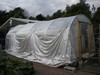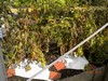 Giant Potato foliage has finished, the early blight attack must have ruined the chance of a really heavy tuber. The ones I can see near the surface are covered with damp peat and I have laid polythene over the top to retain some moisture. have eased off on the watering.