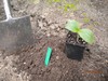 Started planting out giant Tomatoes in my old greenhouse, they have flopped over with the recent heat so I am planting them deep burying the horizontal stem also. This should increase the root area eventually. First flower truss has been removed.