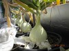 Moved my exhibition Onions out of 24hr area into my greenhouse cabinet, this currently has 10.5hrs supplementary lighting. Trying to support them upright from now on otherwise the bulbs will grow misshapen.