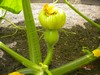 First female on my Squash plant (yes it looks like a Squash, pale green) pollinated with the only one male flower available late in the afternoon, hope it sets ok.
