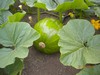 Green Squash has grow well during the hot weather, almost perfect round shape so far. Two others are now set on the plant so may remove one when I am sure which is the stronger.