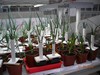 Exhibition Onions just potted on into 5inch pots with two support canes, again in the growth cabinet under 10.5 lights.