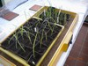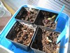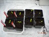 Carrots and Parsnips waiting to be planted out once the weather warms up, soil only 9c pm and covered raised bed only 12c.