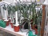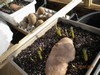 Potatoes starting to grow but having to keep them in the greenhouse for now.