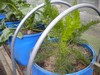 Finally finished building my new growing frame, it holds 10 130litre black pots. Still have these to fill. Both front and rear frame windows can be opened or completely removed during hot weather, so hope it works.
