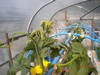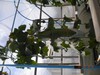 View from inside showing the plant, this has by far the best Cucumber and I have hung a sling to support it now that it is open to the wind and rain.