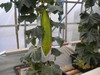 Giant Cucumbers in the two different Canna composts, all greened up now in the sunnier days.