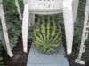 908 roof this is it do or die,14 ft.M.V.Nice shape long stem perfect postion 90 degrees to vine.Shes a beauty!!I just hope it dosent cart wheel on me.I watered today let pump run out of gas a least 2 hours at 1 pm to cool plant.It was 103 in screenhouse in the sun. 93 degrees out 68 last night.This should get her off to a good growing pattern.