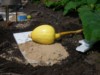 Here's a look at the completed pumpkin house. Just need to employ some dwarves to do the vine burying and watering etc. I have been trampling all over this plot so today I gave the soil one more turn to make it nice and fluffy and have promised not to go in again. In the planting spot I emptied 100L of BioBizz Almix [a blend of soil (20%), compost (35%), worm castings (10%) and Perlite (30%) as well as a special 'pre-mix' (5%) of biologically active organic ingredients. It is pH is 6 and has a fairly high CEC)]. I turned it in very loosely! I'll drag out the ground covering as needed to prevent the weeds from growing