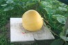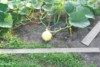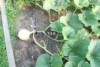 So here we are now, that�s the 150 sqft keeper pic! (1874 Mathison x open). The fruit is 26 DAP, could be bigger, but to be honest I haven�t even thought that the plant would set a fruit. Although the 1874 Mathison plant was one of my best plants in May/June, it seemed to have some troubles in June/July (some leaves died), and the first pollination aborted. According to Murphy�s Law, this small plant then set three successful OPEN pollination over a weekend when I had been away. Few days ago I decided to let this one on the main vine be the keeper and culled the other two. BTW, this plant isn�t alone, it�s hosting the friendly mosaic virus. This little guy will probably slow down the fruit growth a little, so that I will have a pumpkin to harvest from my 150 sqft plant. Last year my 150 sqft pumpkin grew just too fast and had a BES around August 19th.