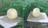 Look what I�ve done today: You know, pumpkins can have all kinds of shapes...round, flat, high wheels etc. Now let�s assume the shape of the pumpkin is an ellipsoid with three different principal axes (this FP serves as a nice model compound). This FP has an actual weight of 66 lbs. Is it heavy or light or on chart??? Well, it depends on where/how the fruit was grown. In its original position (left) the OTT prediction would have been 60 lbs. Hence, the fruit is 10% heavy. Now let�s assume the fruit had been in a different position (middle), OTT prediction would have been 66 lbs...fruit on chart. Oh well, and we also know tall fruit (right)...OTT tells us that it should be a 71 lbs fruit...unfortunately it goes light, -7%.