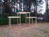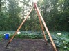 This is our lifting tripod. 16 foot 4X4's reinforced with plywood. It's heavy to set up, but once it's up, we leave it up for the season and it can easily be "walked" from one pumpkin to the next. It's nice to be able to load pumpkins by yourself if necessary.