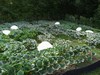 Inside the greenhouses this morning. I started two sets of plants one week apart. You can see the difference one week makes.