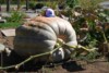 2015 was another tough year. Nothing to a weighoff. Both split underneath due to a mistake I made at Day 10 on both fruit. I stacked up a couple pieces of wood underneath the fruit in order to raise them, however, it was a poor decision as both bottoms were concave before I removed the pieces of wood before Day 20. They never grew out of the shape and both bottoms were indented about 6-8" in the end. Both fruit that I grew last year were larger than any in the past, and I weighed both with a digital crane scale. This one was soft the day before the weighoff.
