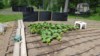 I mixed up the plants on the first overhead picture. It's actually the 1725 Harp on the left side. You can see where I cut off a small fruit that aborted, I'll grow vines into that area. I have a three day old Harp under the first patio table...hoping it takes in the heat we've had.