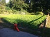Interesting shot of the patch from top of my garage while I was repairing the roof. I pollinated 4 more this morning. There are 9 controlled pollinations 1 open. I may let the plant far left have some more open pollinations for some people who asked for pumpkins. Big pile of compost delivered yesterday for vine burying
