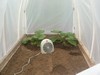 Testing to see soil temps with out heating and just solar under the hoops. it's about 50 deg today. Sun was lower and this was about an hour. soil was 58 and hoop temp was 86. will monitor for a couple of days.