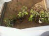 The 3 tomato's in the foreground were planted 1 week after the ones in the back. They are different varieties but I don't think that's that problem if it even is a problem.