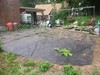 Hoop hoses fixed and in the patch. Monitoring for soil temps. I am going to try filling a black plastic garbage bag with water and see how it affects the hoop and soil temps over night.
