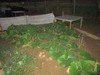 2 plants...125.5 Harnica and 94 Houston. The Harnica plant is a good one with massive stems and vines. About three weeks ago I had only 3 gourds on. I have 8 tied now and probably too many on. I could not make myself cull too many after having none set during the summer. The pollinations started being sucessful after the temps dropped to the low 90's. Last year I had the same thing happen and the late gourds passed the early ones so go young-uns go!.