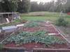 I turned my LG soil and replaced the long tubes of old tomato cages wire that I had made last year which didn't work well. Scrunched the leaves on the inside as they went up. I had some hog panels that fit just right. I just winged it last year and the soil test showed it. Way high on everything except Mg like everything else here so I put a bag of epsom salts ans also spread some feathermeal. I turn it over once in a while after it has rained.