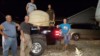 My grandsons hanging out with my pumpkin before we loaded it tonight.