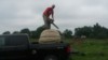 Can anyone identify this guy looking in my tunnel and trying to look at my pumpkin. He said he was lost and gave me some wild story about wanting to sell me a vacuum cleaner. I was able to interrogate him and found out he was from Des Moines. Said his name was Don Young. All kidding aside Don and Julie delivered an order I had. Don and Julie have been very helpful the last couple years in teaching me some things on these AG ' S. Thanks Don and Julie.
