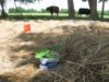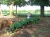 Hay mulch covering in the AG patch is nearly complete. That's about three 4x5 round bales of hay, torn apart, and spread as a covering. The 1556 Companion '12 is in the foreground, with the 1641 Montgomery '11 behind, and to the left.