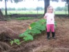 Our garden model with the three 197 Bright '13 Carolina Cross watermelons. Finally starting to vine out!