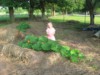 Our second Garden Model poses with one of the two largest 197 Bright, which have both reached about 115 pounds. Too late to do anything about pulling up the grass this year, and it's only 25 days until the turn-in for the county fair. At the suggestion of Lloyd Bright, I'll be using Poast next year to keep the grass at bay.