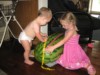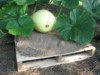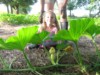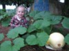 Let's try that again, except with a photo. Our Garden Model discovers the first of the 197 Bright '13 Carolina Cross watermelons. It has the classic shape to become a true giant, and already has an OTT of 38! WOOHOO!