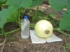 7 DAP on the 1641 Montgomery. Terminated and buried vines today, with the main terminated at about 28 feet, and this pumpkin at 22. Not sure if the frozen bottles will help at this point, but they can't hurt in the Oklahoma heat
