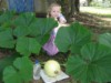 Our Garden Model poses with the 1641 Montgomery '11. Some huge leaves (22 inches across) on the left, and two females in the past week. Hopefully, we can get a pollination with the Companion before heading out of town for the 4th!