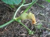 1556 Companion finally produced a female that didn't simply fall off. Nice five-lober, but it's way the heck out there (25+ feet) on the vine. Unless this plant produces something closer to the stump, I'll just have to work with what I have.