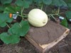 Our Garden Model discovers the first of the 197 Bright '13 Carolina Cross watermelons. It has the classic shape to become a true giant, and already has an OTT of 38! WOOHOO!