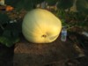 The sad conclusion to the Great White (now orangeish) Dope from the 1641 Montgomery. A mere 120 pounds, but 6% heavy. For 2015, I'll be moving the AG patch back to better sun and soil, where in 2012, a generic store-bought seed reached 137 lbs. in 105�F temps in 45 DAP before the vines succumbed to the scorching heat.