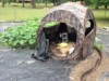Vegetative growth has definetly slowed down. It hasn't stopped completely, but I can see the stems at the end of some 20ft+ secondaries turning shades of yellow, appearing to have nutrient difficiencies. By not fertilizing and then burying each node (no MYCOZ either!) I see not how the tarp has really held me back. This is what I get by doing something as an afterthough. BUT, holding my feet to the fire has at least come this far. I am having some tertiaries and new growth around the stump lately. Going in there to cut it back, I noticed some scondaries that have Vine Borer damage at the first node leaving the trunk. I was not dilligent enough applying the SEVIN, especially to protect the main stump and base. I worry about how much destruction will occur before this wave leaves the vine and pupates. I applied a good measure of SEVIN around the stump, trunk, before the fruit, and where the secondaries branch off. I will be more diligent in the future. I am using SAFER 3in1 to protect my fruit, and apply every week. So far the hunting blind has been perfect cover against the elements.