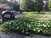 View of the plant mass. So far I just have a few leaves around the stump that are yellowing or dying off due to some cause, deficiency or abuse. It's not plantwide white powder or anything, but I am keeping my eyes peeled. I'm also seeing a few squash bugs here and there, so I dusted with SEVIN. I decided I do not like the dust due to the potential to breath the powder in days after application (while pruning and working within the patch). Next time I'll buy the liquid concentrate and apply with a broadcast water hose sprayer, and regiment it to once every week or two.