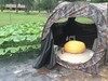Had a eurika moment after making a larger shade cover. I realized that it wouldnt be big enough after 2 weeks, and doesnt prevent my chickens from rooting around the sandy area. Good ol pop up hunting blind! Its been almost 10 days after conception and the diameter is roughly 7.5". Smaller than I'd hope for (compared to others) but beyond all expectation for the journey so far. Put in a ton of work this weekend, adding more irrigation and getting the tap roots to the dirt. Also anticipating the main trunk and side shoots paths to completion. The plant overall appears dark green and healthy, with only slight mid day wilting due to the direct sunshine and heat.