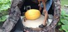 I used a pool noodle to protect the bottom loop, and moving straps made a X up and over to support the weight as it was hoisted. You can see the non existant stem covered in Daconil. Pumpkin integrety was great during lifting and transport (with the exception of the stem). It has held its shape and firmness well.