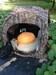 She's puttin on. Note the oblong shape, not as rounded as other growers diary entrys show. I wonder how bad that is, worried about the weight and falling in upon itself. I am using a plastic stool to keep the middday sun off of it temporarily.