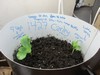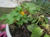 A volunteer squash of some type coming out of the flower pot. It will quickly learn the value of vancouver real estate, especially with it's atlantic neighbor!
