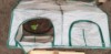 The Stevens seedling is all tucked in for the cool night. The heating cables have maintained a soil temp of 68-70, but I figure the lamp for one or two more night can't hurt. The 6$ pumpkin shanty at the other end of the garden is in, but the Steil seedling won't be going in the dirt until Sunday.