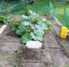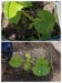 Warm weather this weekend. The stevens plant was getting cramped in its cloche, so off they went. Less full sun today than yesterday probably helped too. Need to weed.
