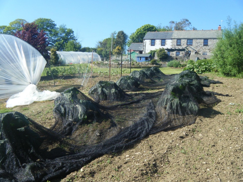 I had a bit of pigeon damage on my giant cabbage this week so have made a quick temorary job to keep them off with some silage bale netting.