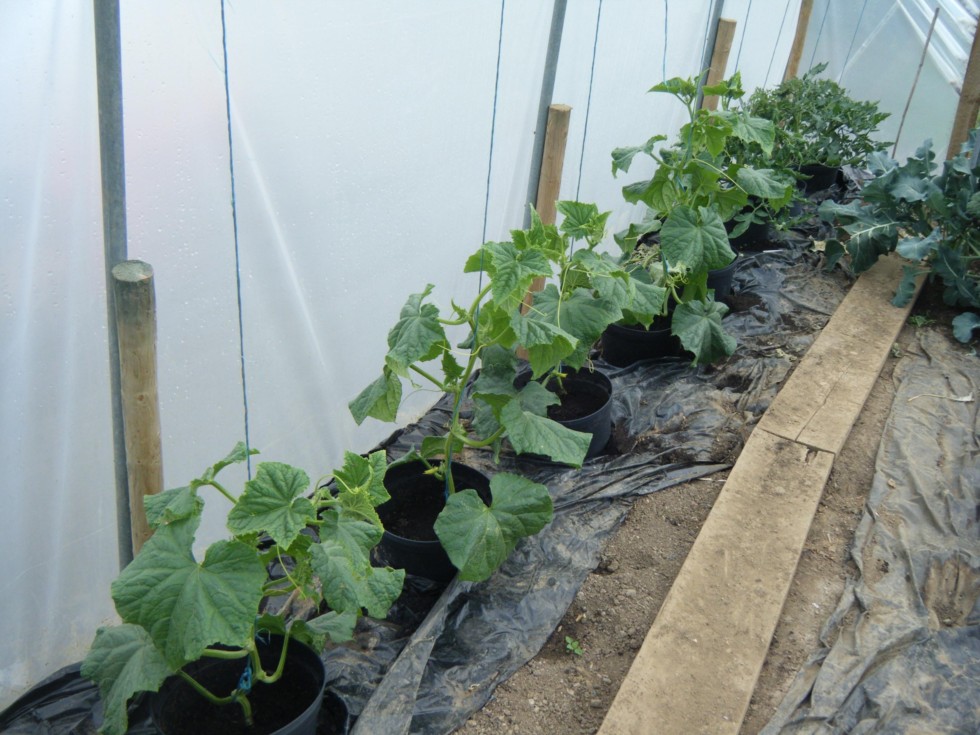 I have now tied up my cucumbers and tomatoes, the tomatoes have flowers about to open.